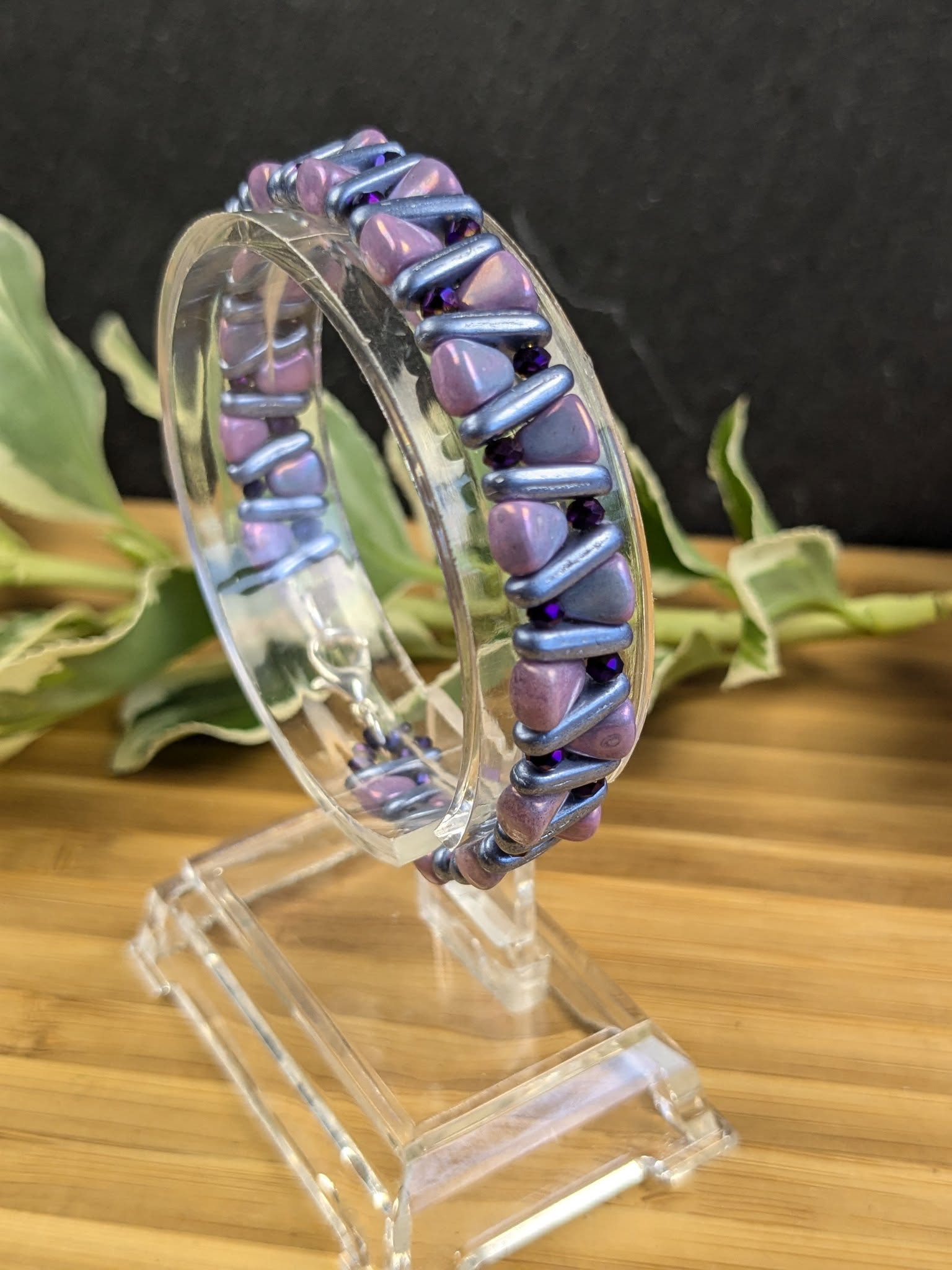 A colourful but subtle beaded bracelet with all the colours of Autumn with beads of different shapes & sizes. Finished with a Crab claw clasp.