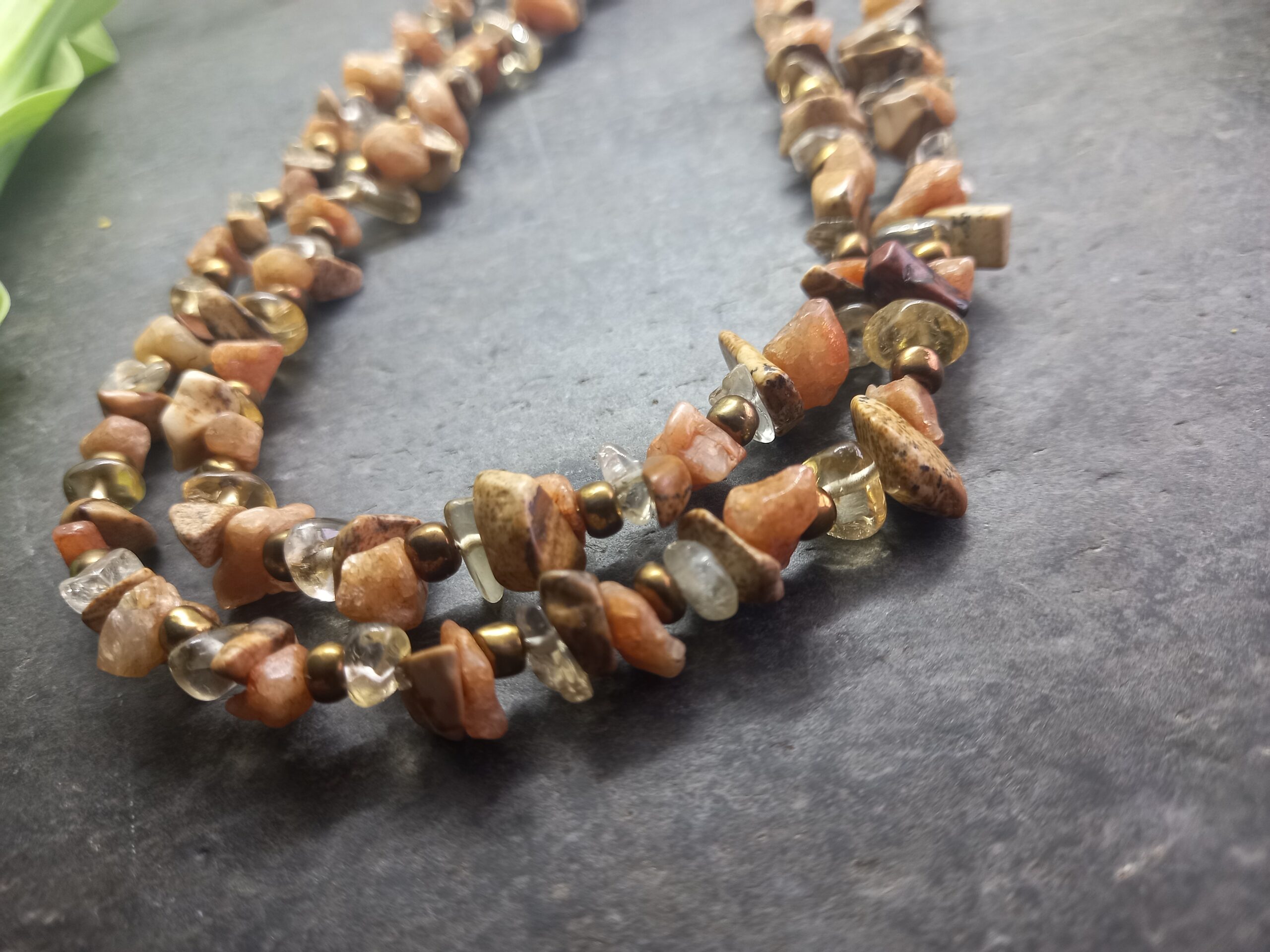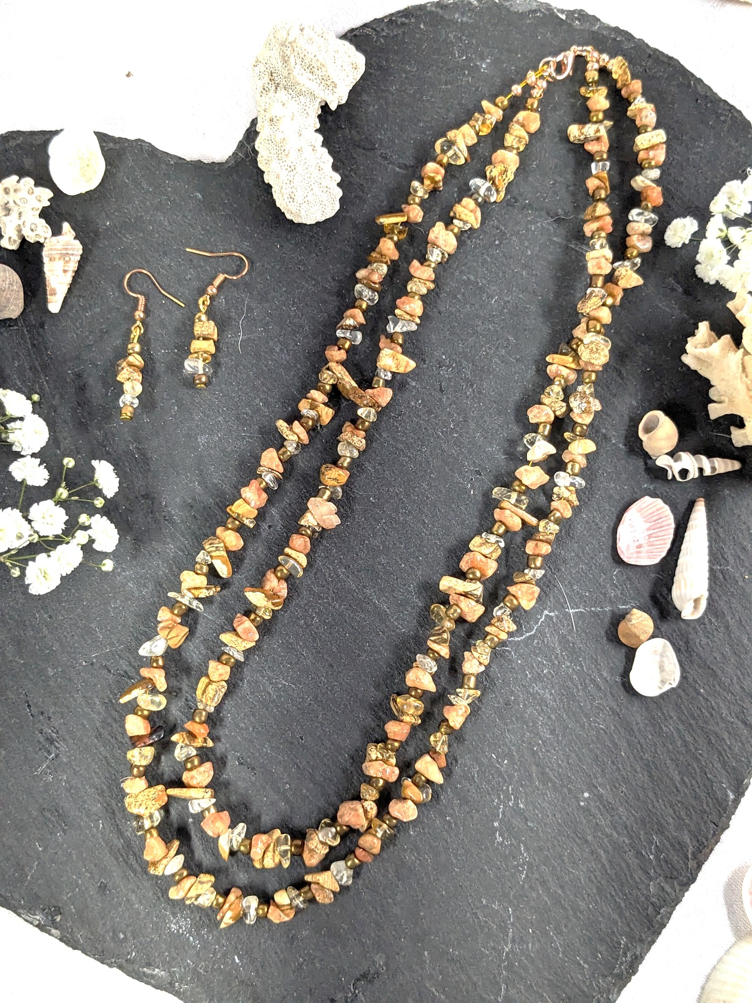 This item is created using a mixture of gemstone pieces including Jasper, Citrine & Sunstone