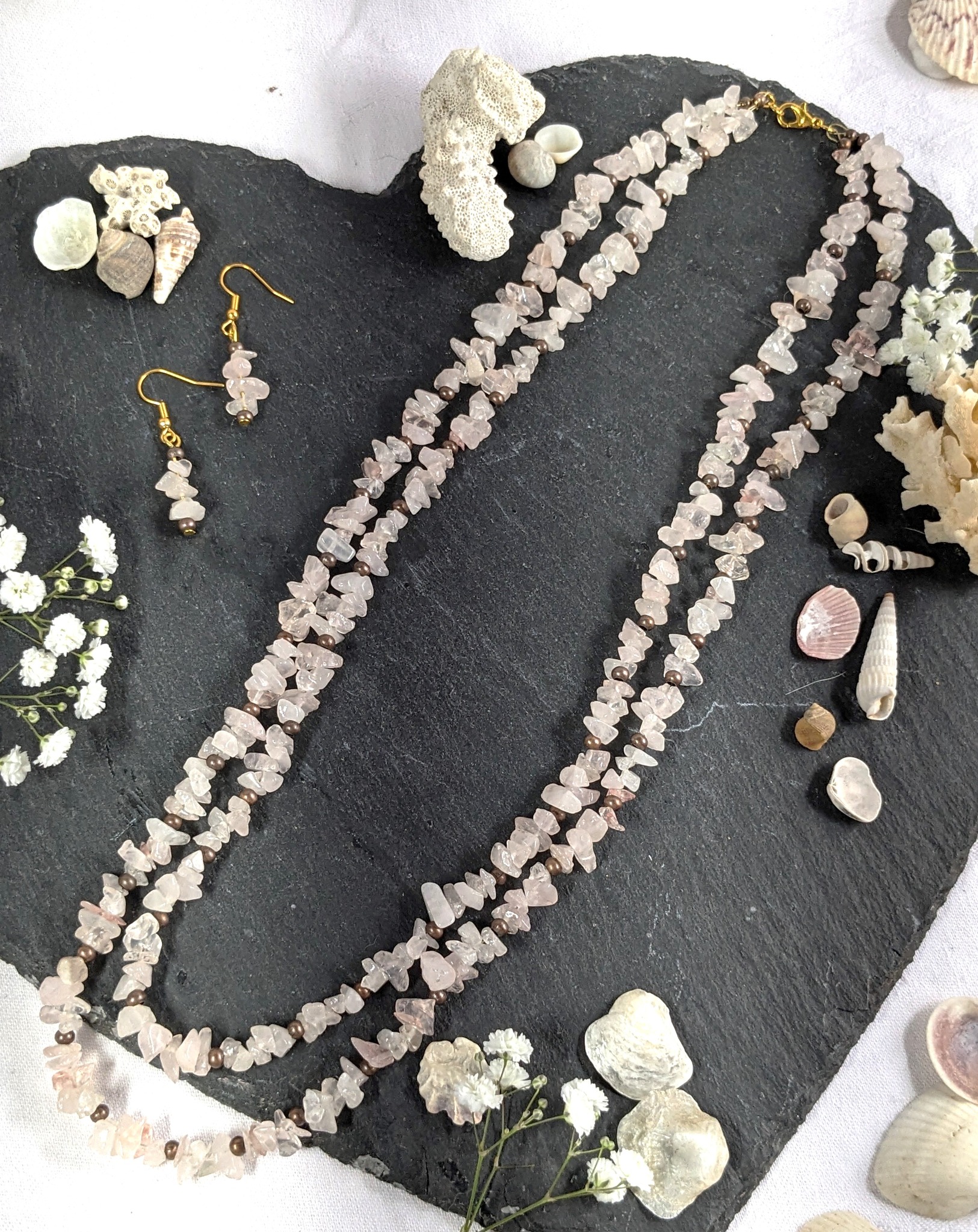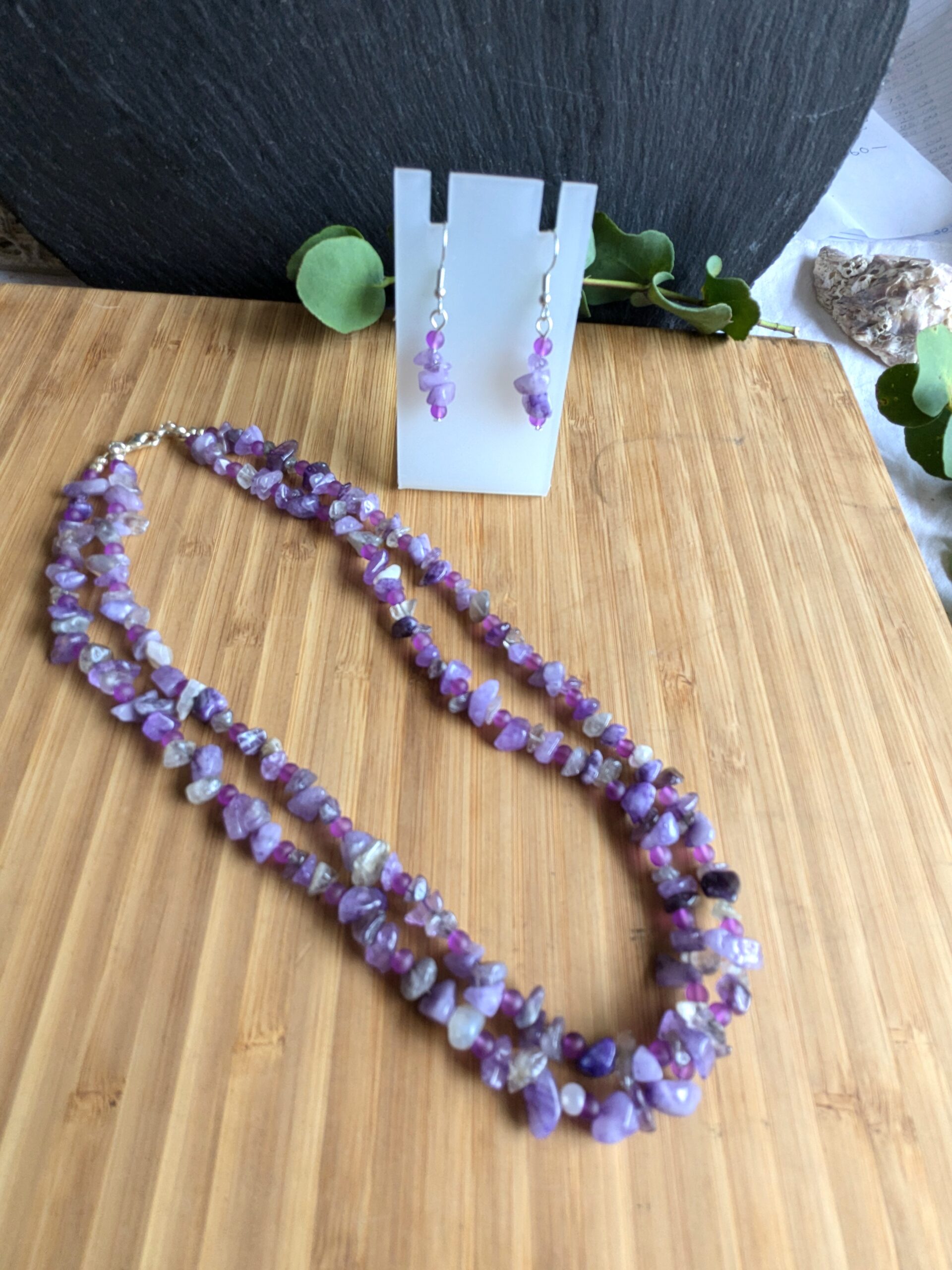 Double stranded crystal chips mounted on strong tiger tail thread with co-ordinating Earrings