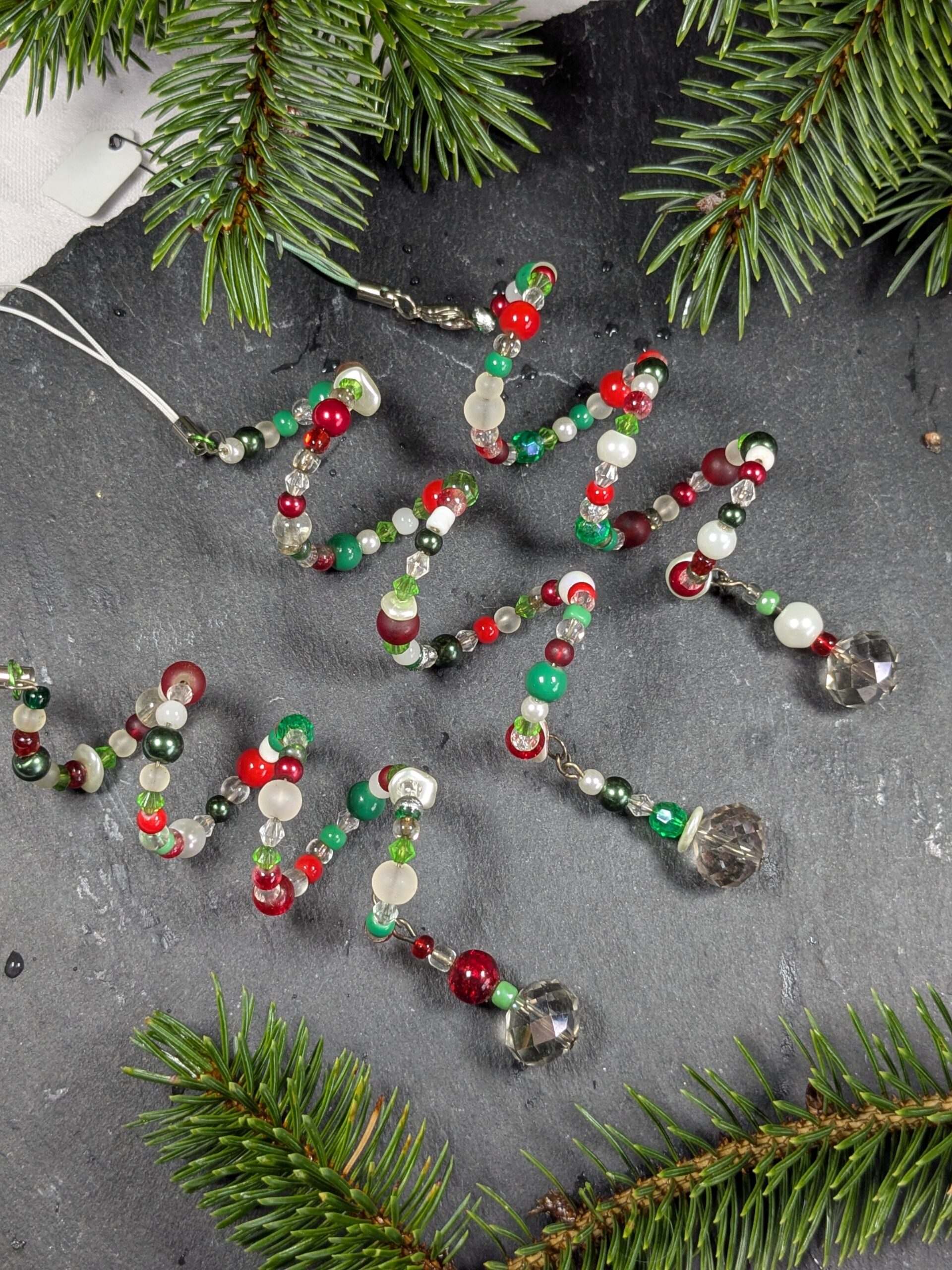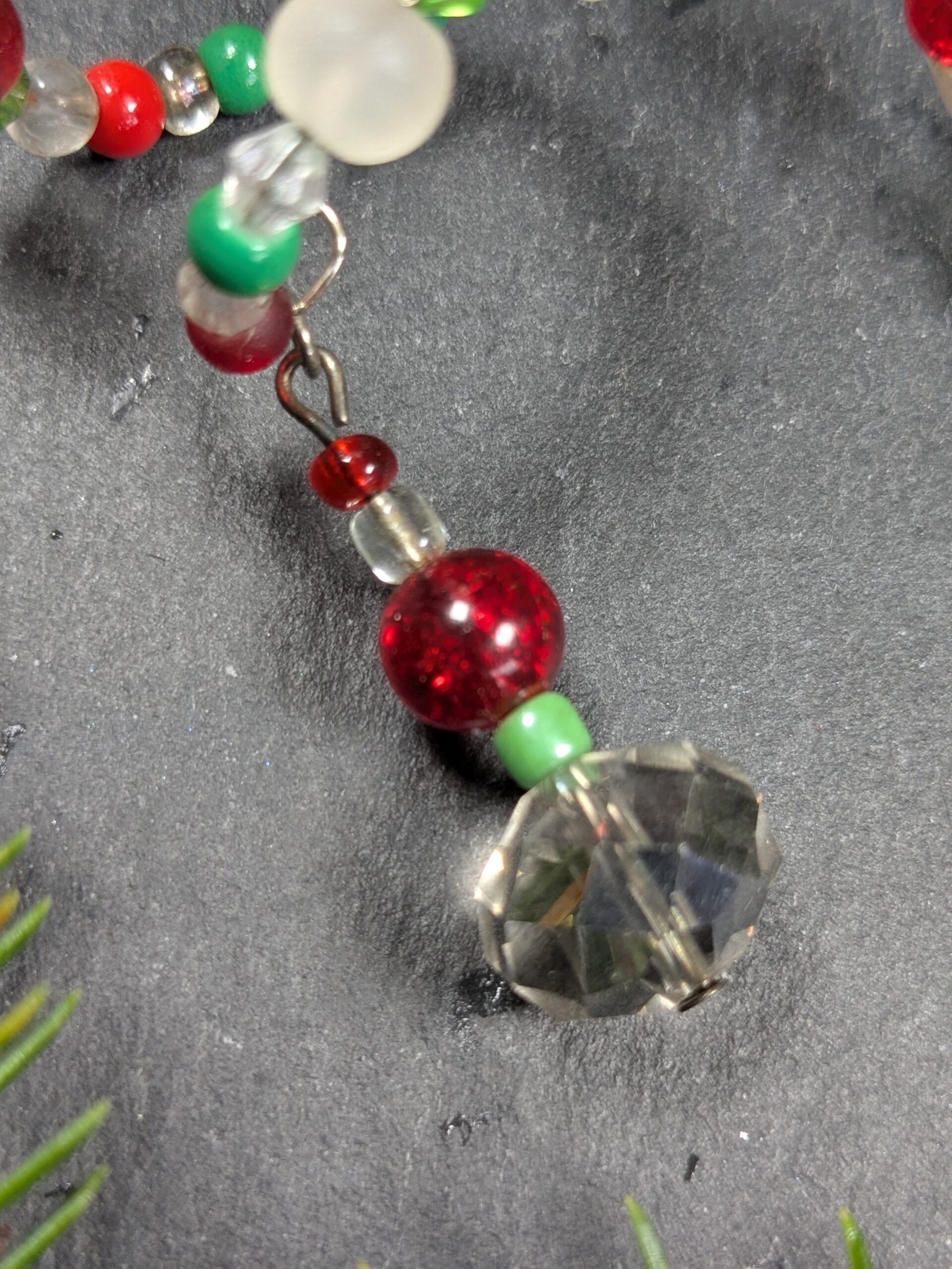 Red, White & Green Hanging Spiral Decorations with Smokey crystal pendant to finish